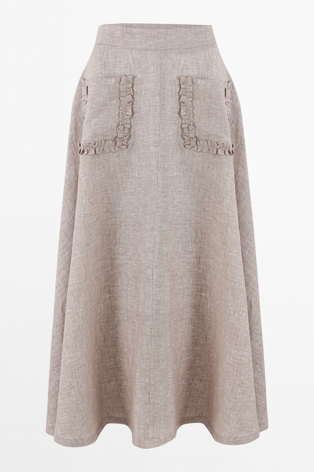 Product Specifications: Aline linen skirt beige with Ruffled Trim Pocket
